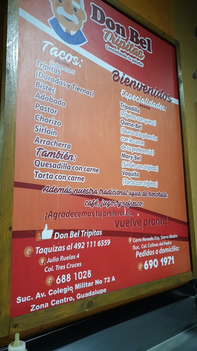 Welcome to Tripitas Don Bel, a hidden gem nestled in the heart of Zacatecas. Known for its exceptional tripe tacos, this eatery captivates with its warm atmosphere and attentive service. Customers rave about the golden, soft tripe taquitos that are cooked to perfection, offering a delightful burst of flavor with every bite.